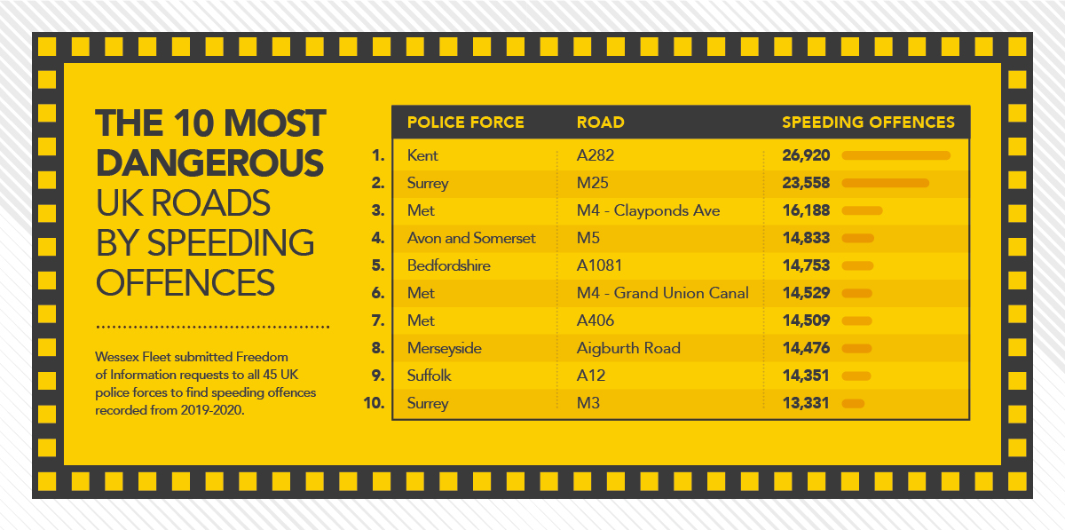 Analysing each area’s most prolific routes for speeding offences, covering 699,517 incidents, we can reveal the most and least dangerous roads.