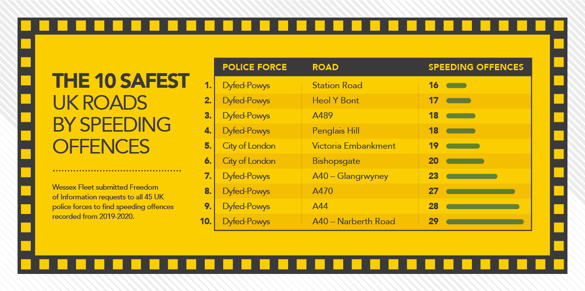 Across the Welsh border, Dyfed-Powys Police is again a standout performer, with a total of just 298 speeding offences recorded last year – more than 90% better off than the second safest.