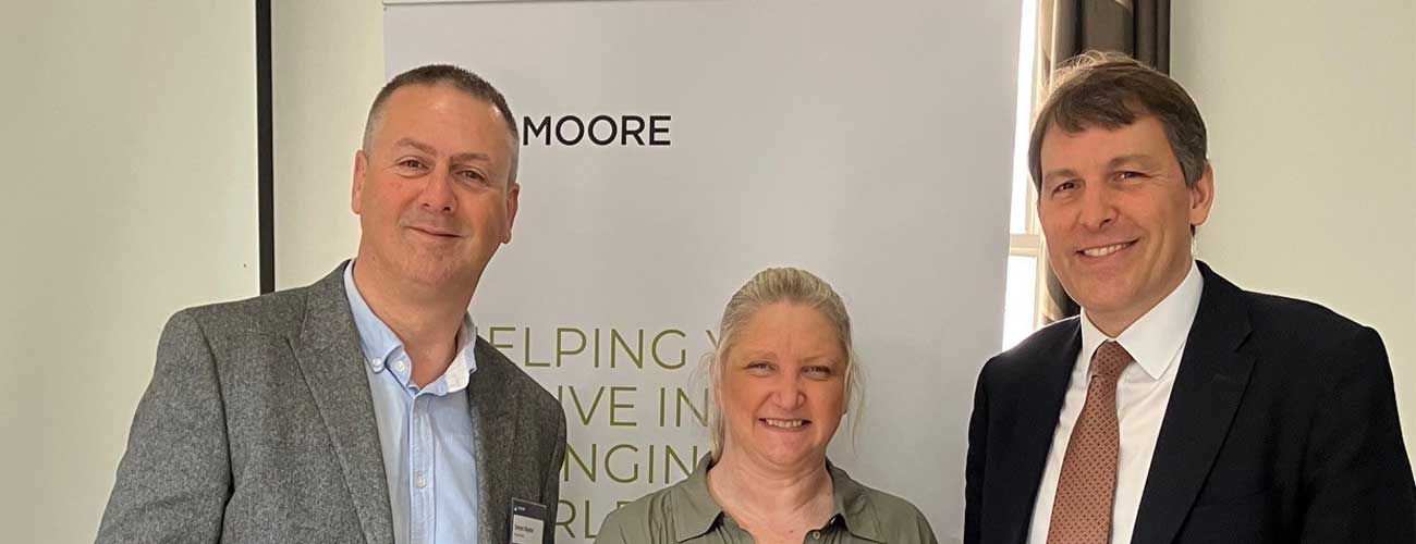 Director Simon Naylor and Tracy Coles, Compliance Officer and Resources Manager for Wessex Fleet, with Rt Hon John Glen MP for Salisbury at the Spring Breakfast hosted by Moore (South).